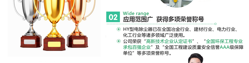HY型電除塵器已在全國冶金行業、建材行業、電力行業、化工行業等諸多領域廣泛使用。